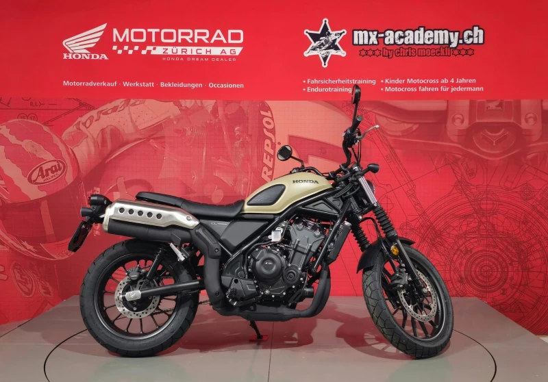 Diese CL 500 ist ab Lager "Honda Motorrad Zürich" kurzfristig verfügbar. Fr. 7789.- plus Fr. 300.- Ablieferpauschale (voller Tank, Vignette, Formalitäten) - 72Mt. Bis zu 6 Jahre Garantie