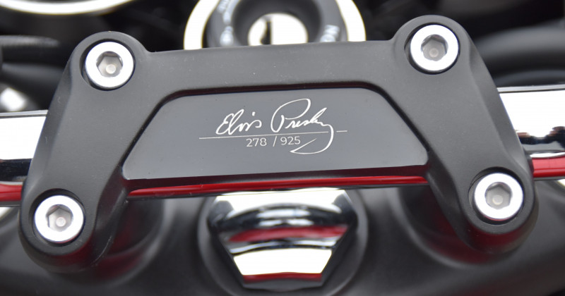 Die Elvis Presley Limited Edition der Triumph Bonneville T120 ist eine Hommage an eine Kultfigur und den größten Solokünstler der Musikgeschichte. Jedes der weltweit auf 925 Exemplare limitierten Motorräder ist individuell nummeriert und wird mit einer goldenen Schallplatte, einer Hülle mit einzigartigem Artwork von Elvis Presley und Triumph Motorcycles sowie einem signierten Echtheitszertifikat ausgeliefert. Zertifikat 278/925