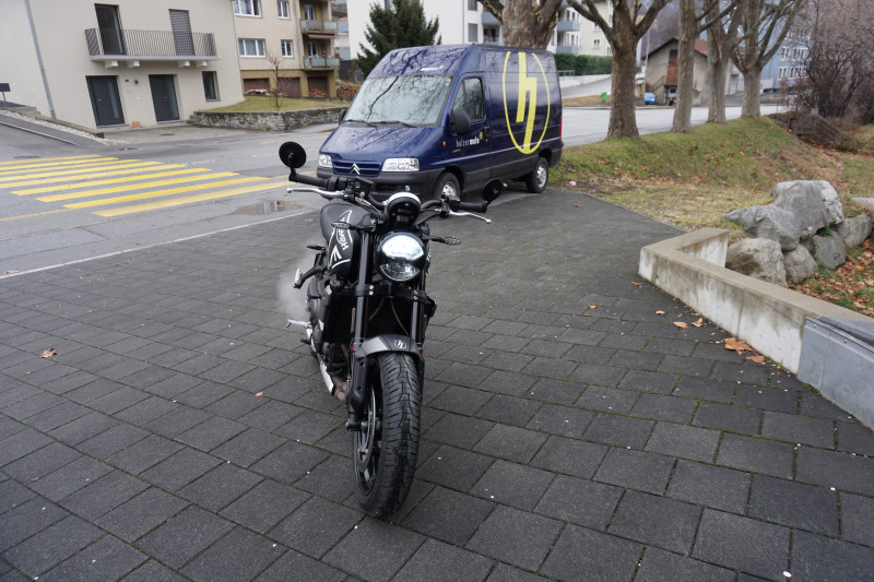Die Triumph Trident 660 ist in einem guten Zustand. Der Service wurde im März 2025 mit 20'476 km von uns ausgeführt. Zugleich wurde der Reifen hinten ersetzt.
