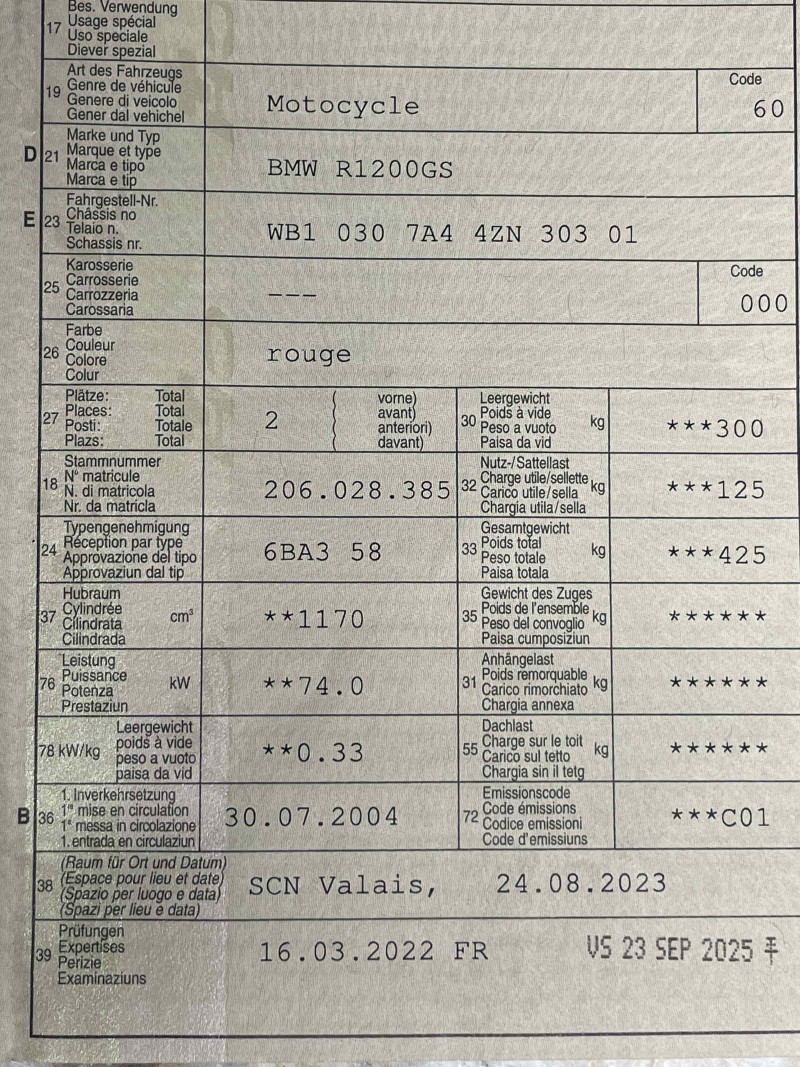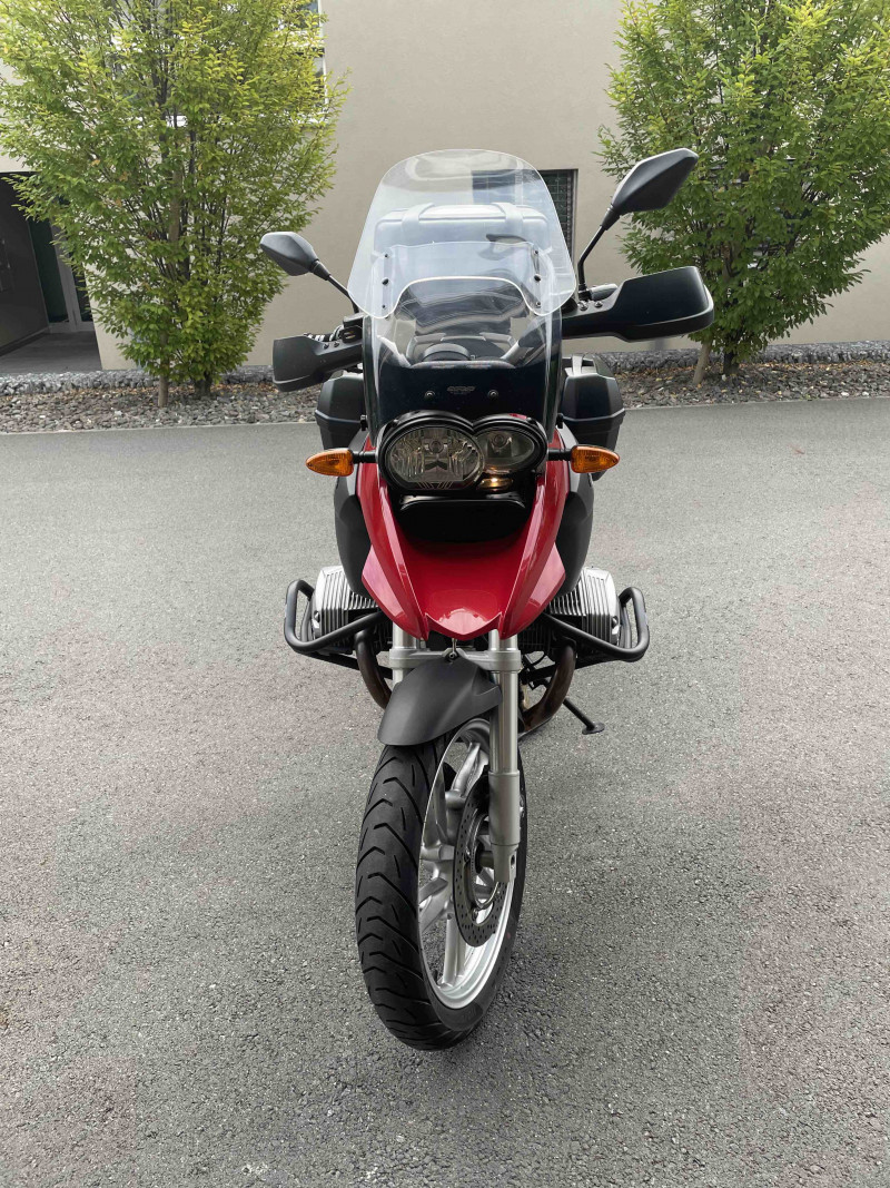 Selle basse, barres de protection moteur; train de pneus neufs en 2025; pièces d'origine (supports valises BMW, pare-brise)