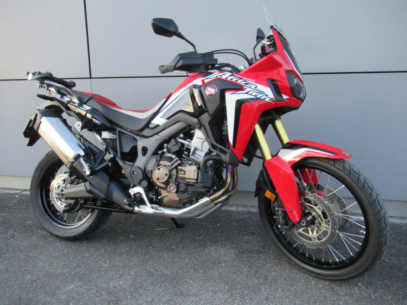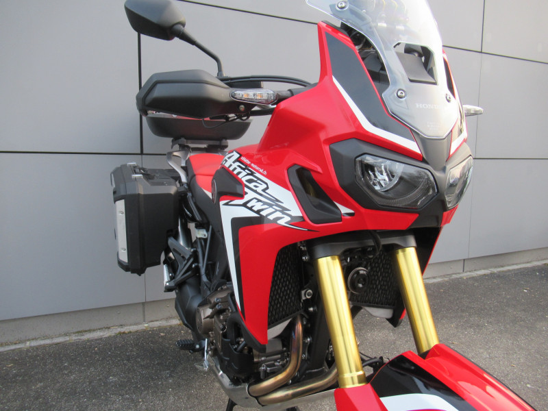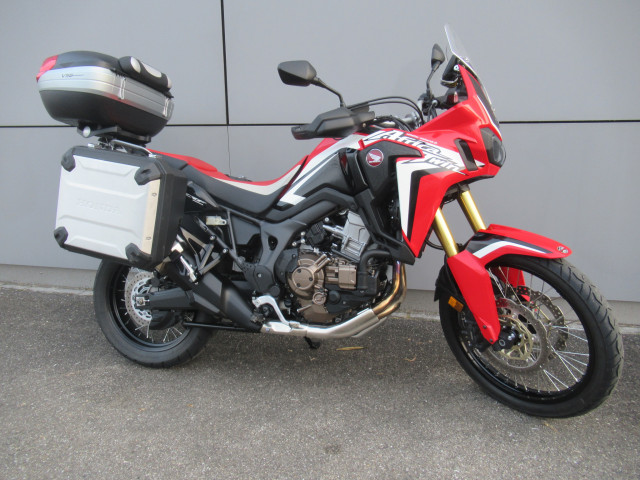 Schöne Africa Twin ab Service Gross mit Koffersatz, Griffheizung, Zentralständer und hoher Windschutzscheibe. Jetzt nur noch Probe fahren!